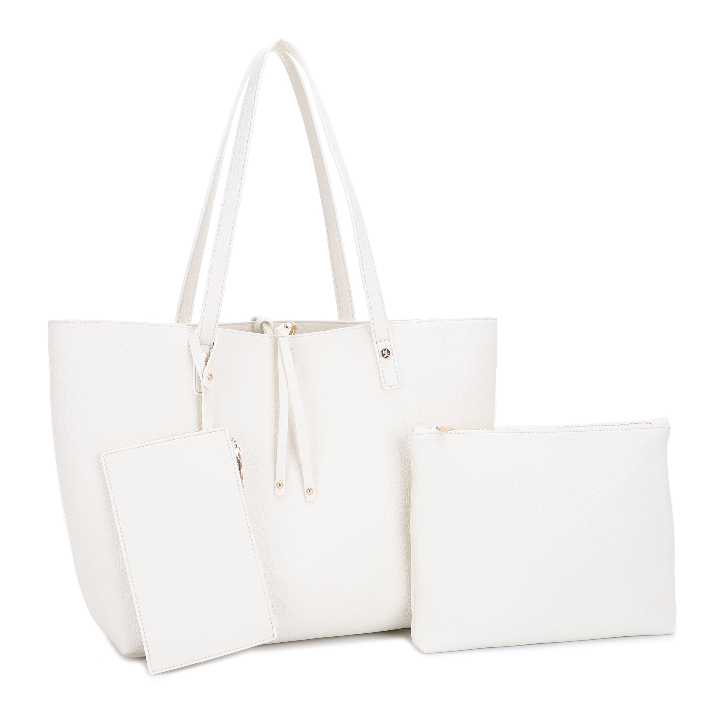 Designed for life on-the-go, the Monet Everyday Tote Set is your new must-have tote, whether you're heading to work, running errands, or traveling. This thoughtfully curated 3-in-1 set includes a spacious tote, a matching wristlet, and a versatile zip pouch, giving you endless ways to stay organized in style. Crafted from luxurious vegan leather, the tote features a roomy interior that easily fits your daily essentials—laptop, planner, water bottle, and more. The detachable wristlet is perfect for quick coffee runs, while the compact pouch keeps your small must-haves neatly tucked away.